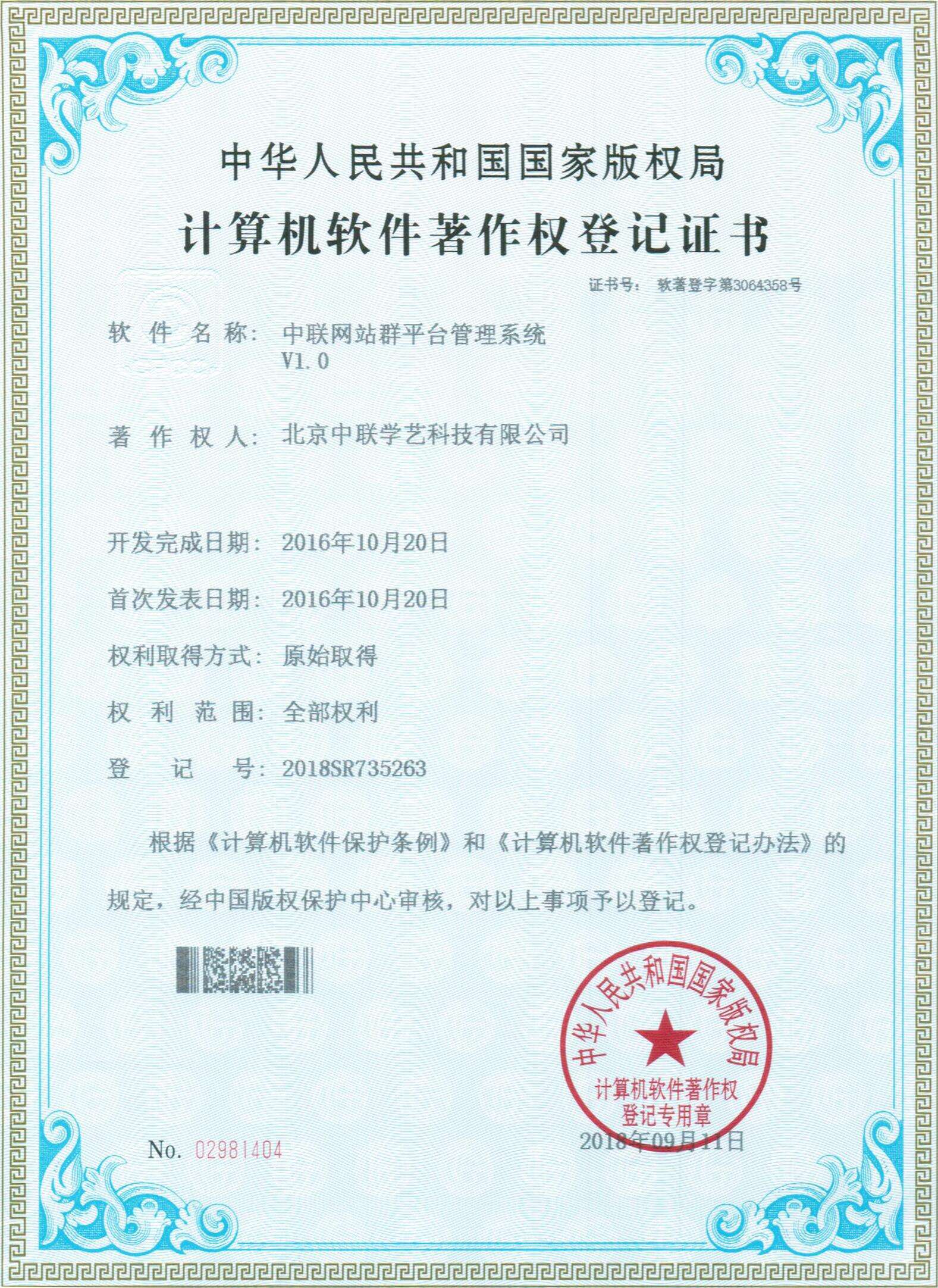 中聯(lián)站群系統(tǒng)軟著權(quán)證書(shū)