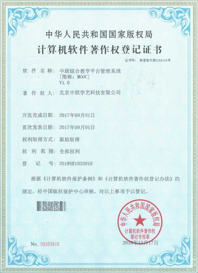 中聯(lián)教育平臺(tái)軟著權(quán)證書(shū)