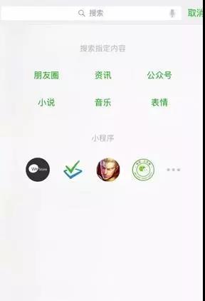微信 + 搜狗形成微生態(tài)中強(qiáng)大的搜索引擎。微信搜索頁面還有小程序的快捷入口,為常用的小程序帶來更多的曝光和開啟機(jī)會(huì)。